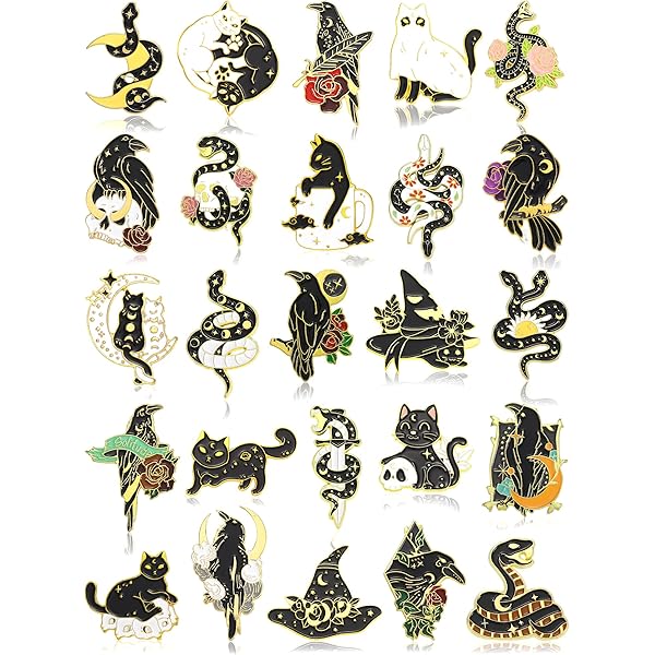 Amazon Com Juego De 25 Pines Esmaltados De Oro Negro Y Negro Para Mochila Alfileres Goticos Cuervo Serpiente Gato Botones Broches De Terror Lindas Insignias Esteticas Para Ropa Bolsas De Solapa Chaquetas De